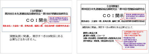 演題発表時にはCOIの有無にかかわらず必ず下記のスライドを2枚目(タイトルスライド後)に写してください。